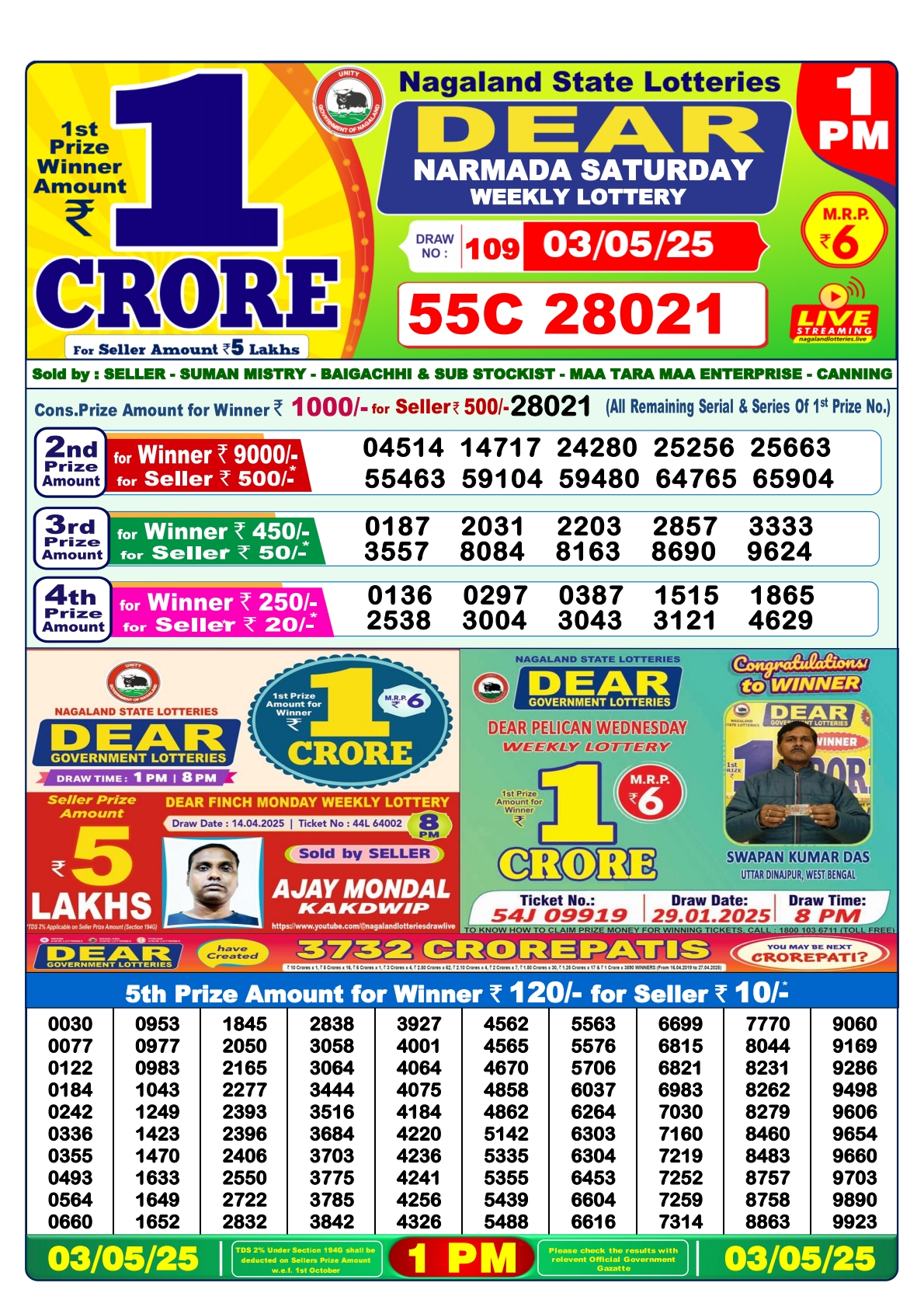 Dear Sambad 1 PM Result Today (Live) | 10.11.25